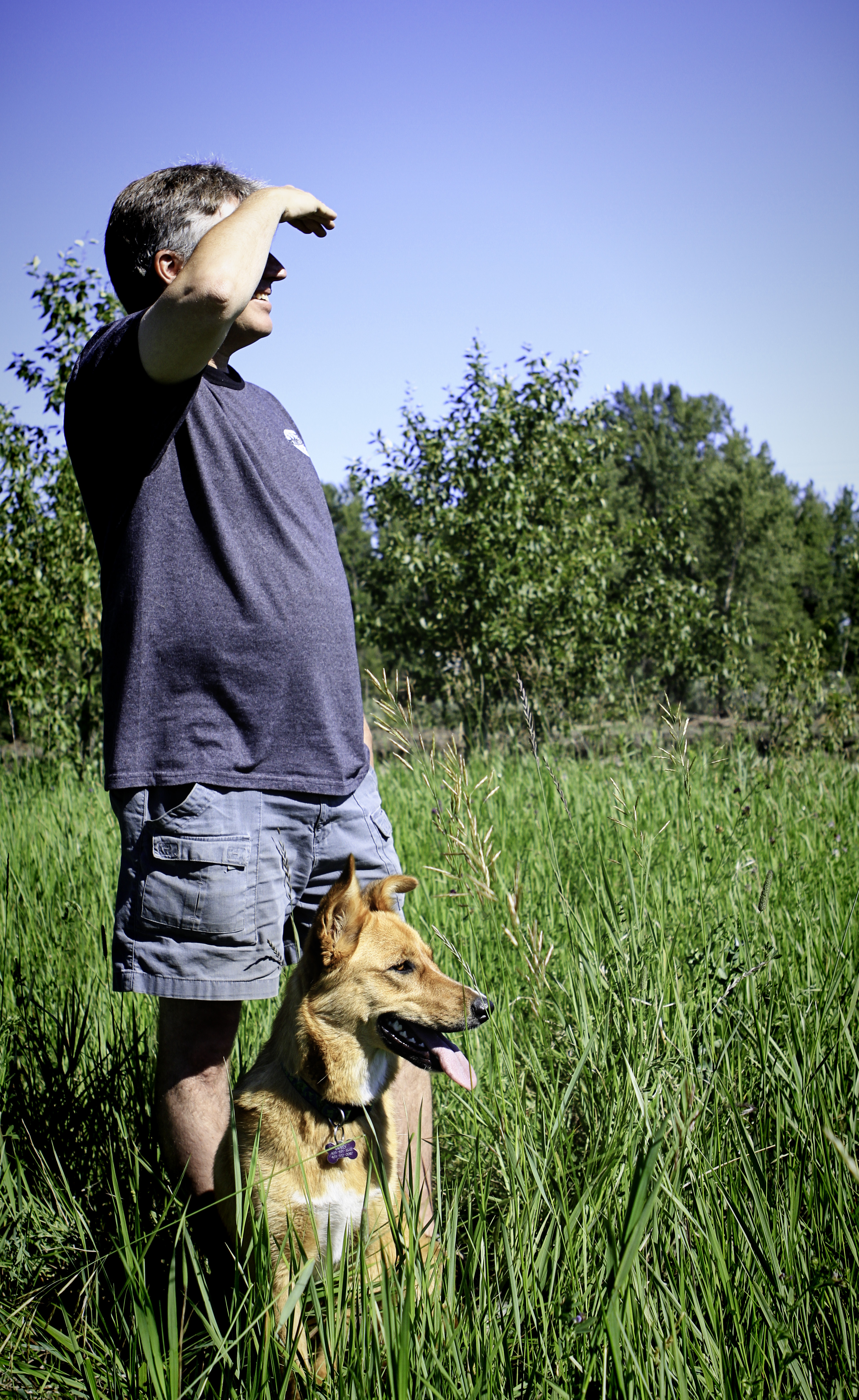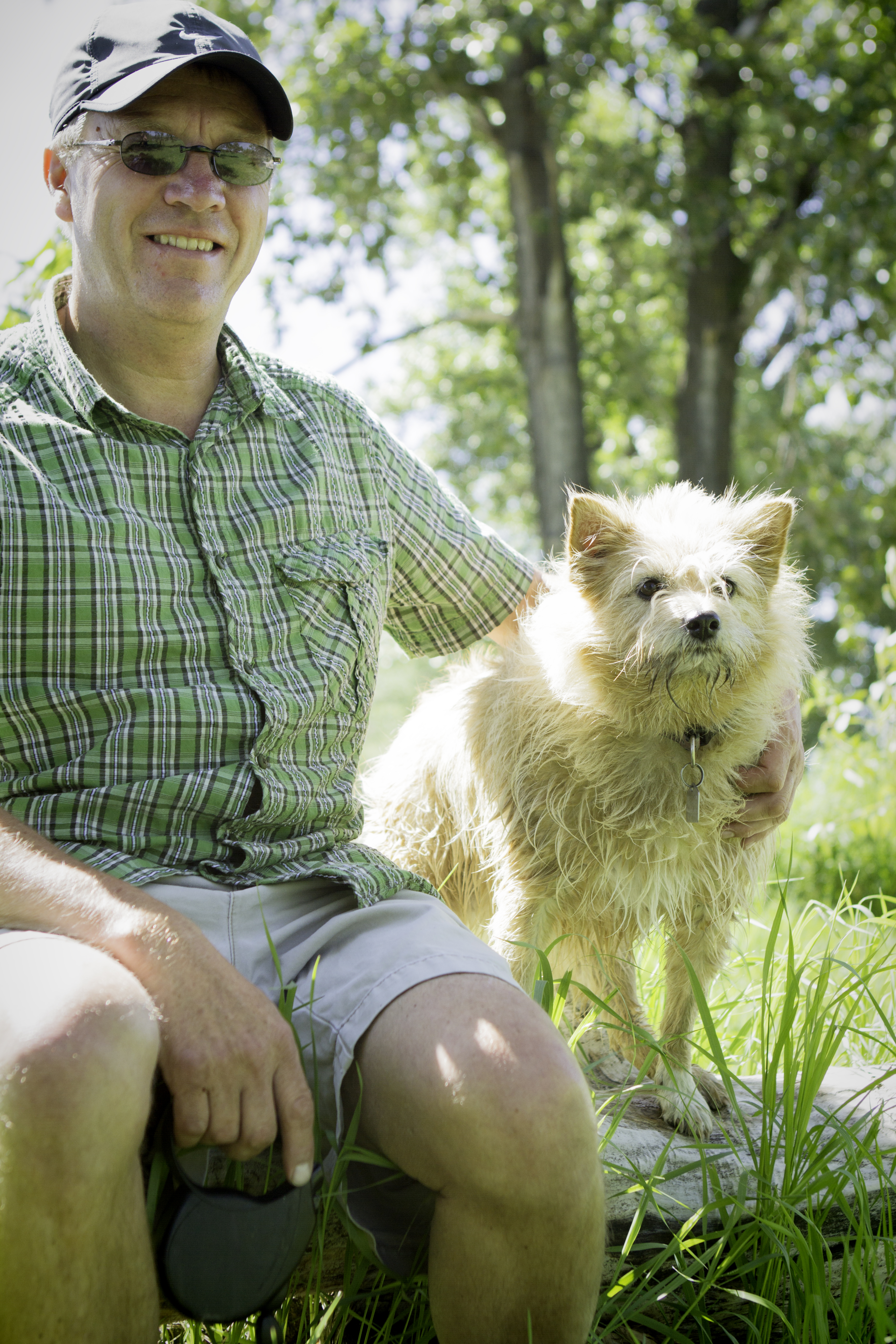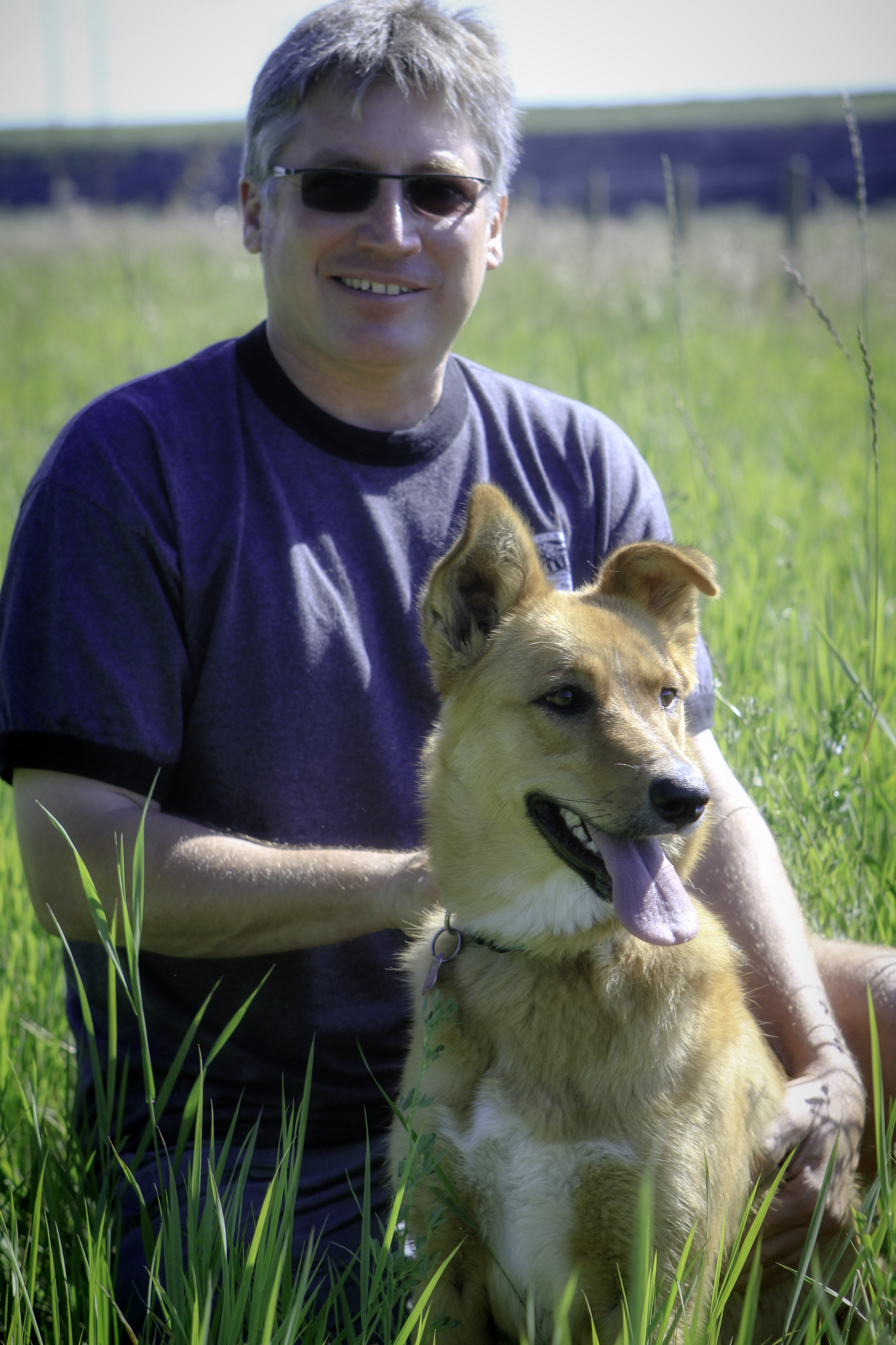 Lucky Baffin, a 3 1/2 year old mixed breed pup, gets to walk about 3-4 hours a day with her person Charlie, here, as well as other great off leash areas around Calgary. Baffin was originally Charlie’s daughter’s dog but came to live with him about a year ago as he had much more time to spend with her. She adopted her through Rocky Mountain Animal Rescue near Canmore Alberta.