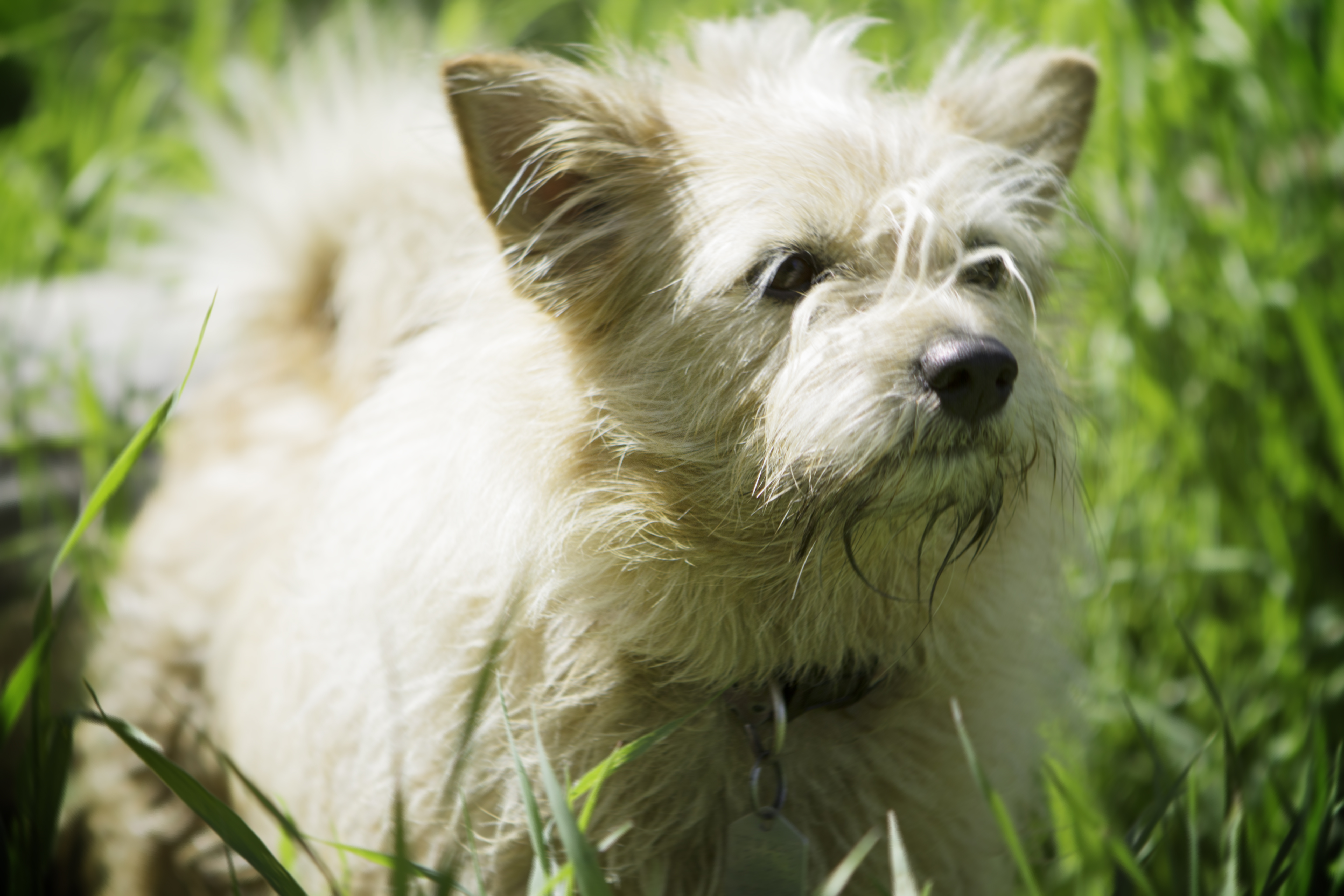 Baffin (aptly named) came from Baffin Island in the Canadian territory of Nunavut when she was about 2 years old. Charlie isn’t quite sure about her life before being picked up as a stray, but it seems most likely she had to fend for herself. Baffin is a confident, friendly little dog, with no signs of any previously negative experiences. You can sure tell she loves every minute of her life now. She loves the water, zooming around, meeting other dogs and people and digging holes (there has to be some terrier in her).