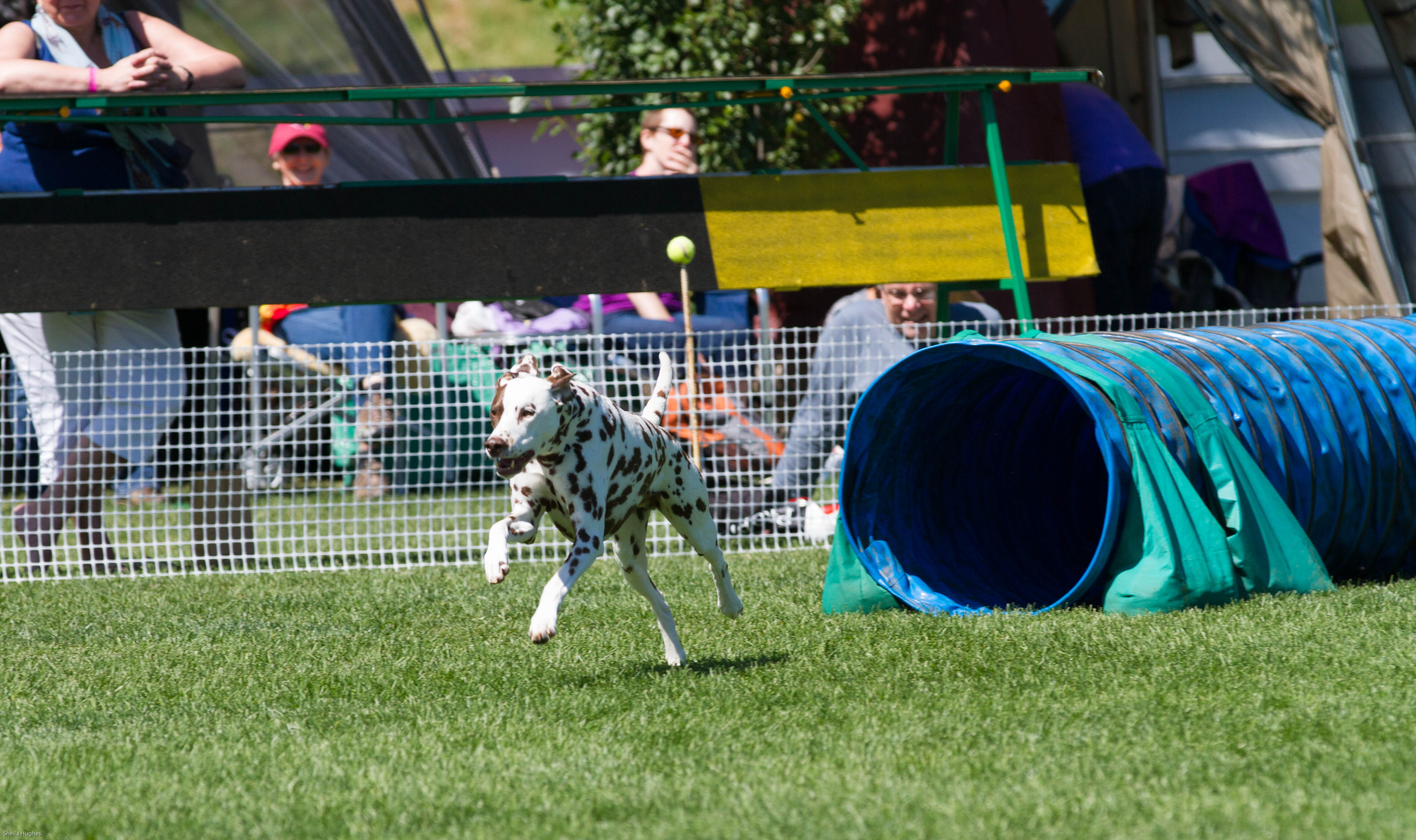 We met at the NADAC (North American Dog Agility Council) competition at Spruce Meadows in Calgary. This competition was running in conjunction with the AKA (Alberta Kennel Club) Summer Classic. In addition to regular agility classes they have classes called: Jumpers, Tunnelers, Weavers, Touch N Go, Hoopers and Chance, you can learn all about them on their website.