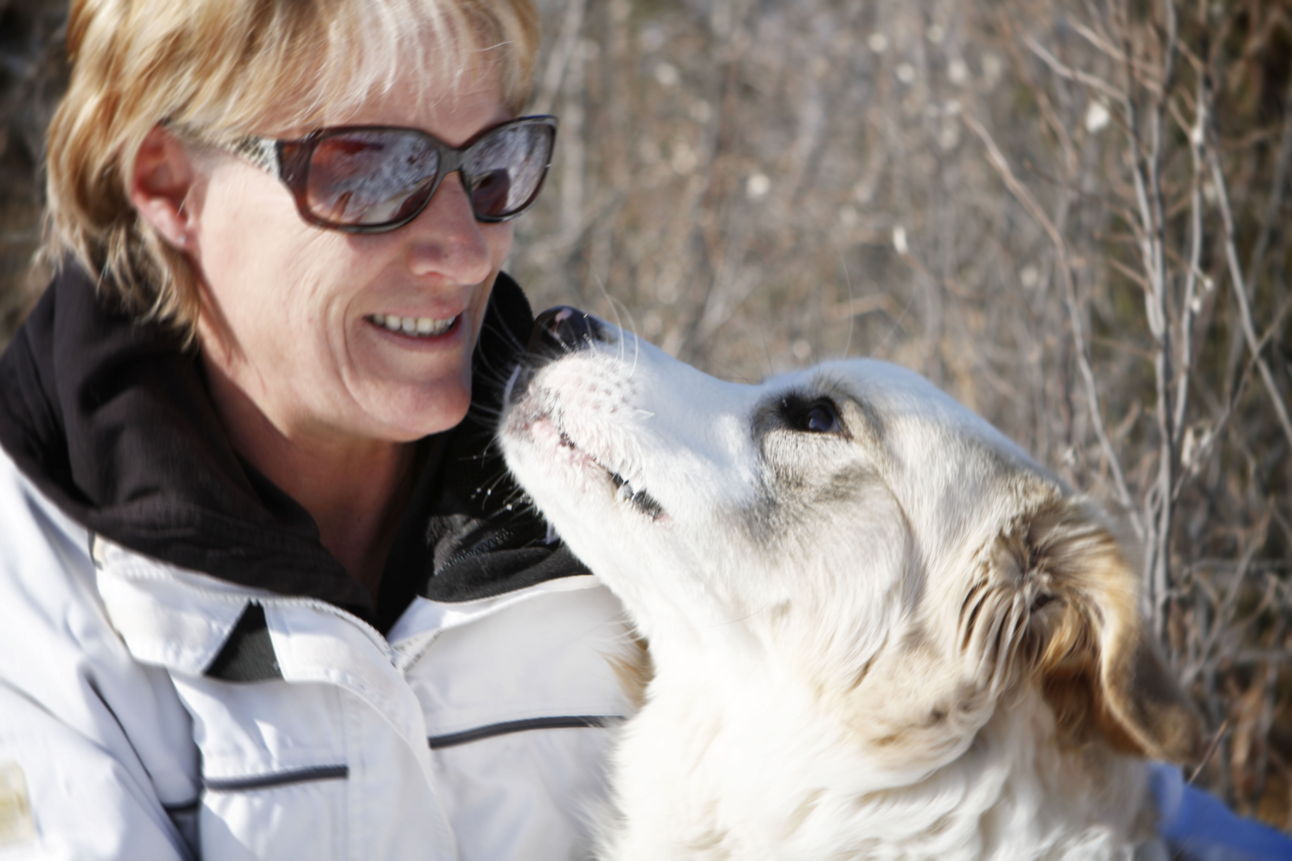 She stood off from the group watching but came over to Patty when she was sitting on the log. At first I thought she was someone else’s dog, just coming over to say hello. Patty is a City of Calgary Animal Services Officer and she found Juno (a 5 year old mixed breed pup) living under a truck several years ago. Juno tried to bite the other officer getting her from under the truck out of fear and things weren’t looking too good for her but with luck Patty asked to adopt her and they went home together. She is a beautiful girl, still shy, especially around larger groups of dogs. She had a bad experience at the dog park and it is still affects her. I guess she figured our big mob was okay and was quite comfortable by the time we parted company. You can see from the little pink spot on her nose that she has Lupus. The form of Lupus Juno has is benign, it cannot be cured but it can be managed. It is not known why dogs get Lupus it can be genetic, viral or even excessive exposure to sunlight (which is a possibility with living under a truck like she did).