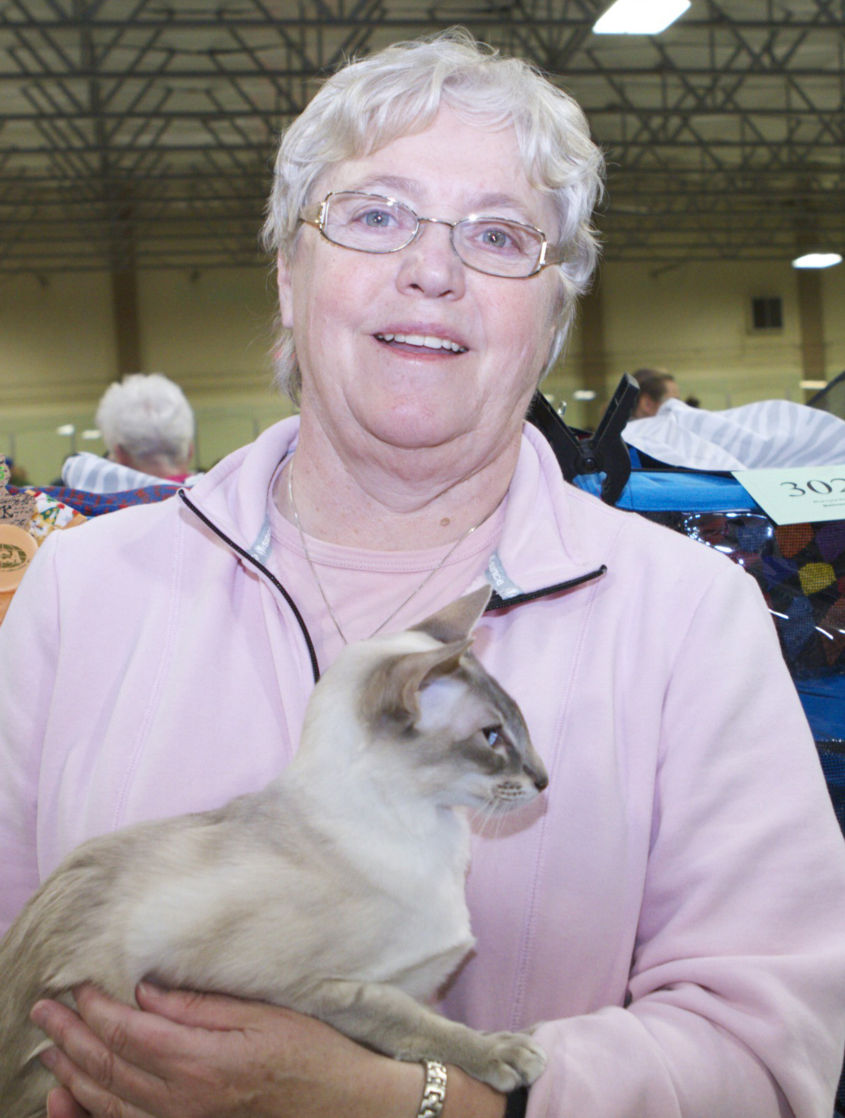 They came all the way from Abbotsford, British Columbia with Leslie’s husband, David. Jack is a 9 month old Blue Lynx Point and Lindy a two year old Brown Ticked Tabby. Only Jack came out to be introduced and say hello; Lindy was quite comfy lounging and snoozing in her carrier so we didn’t disturb her. Leslie and David are not breeders, they enjoy travelling around to the shows and enjoy the competitions for all of the friendships they have made with fellow competitors and cat lovers. They have travelled throughout BC, Alberta, Washington state and Arizona. They love these two kitties, Jack and Lindy are lively and playful at home, and bring them many laughs and a lot of joy.
