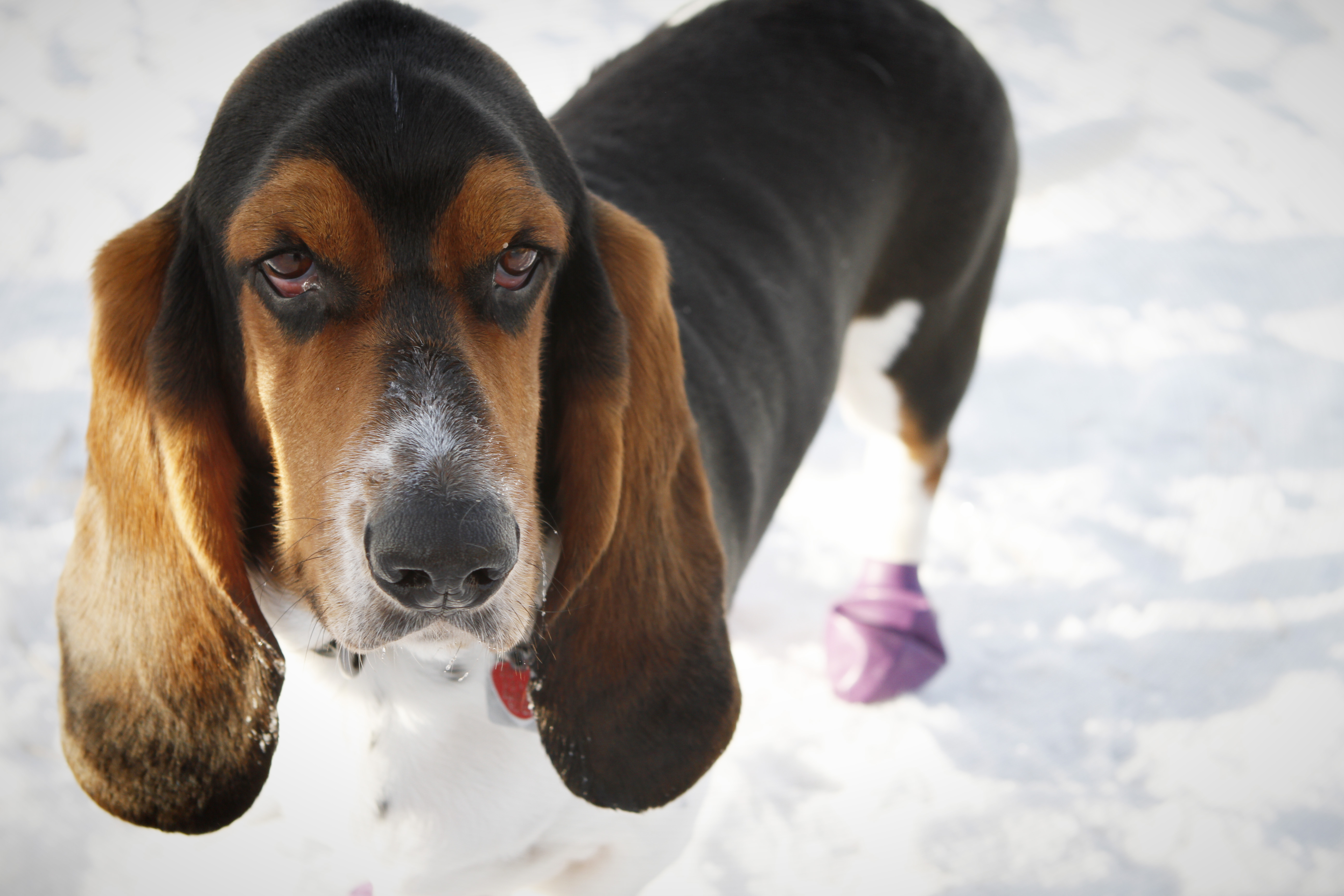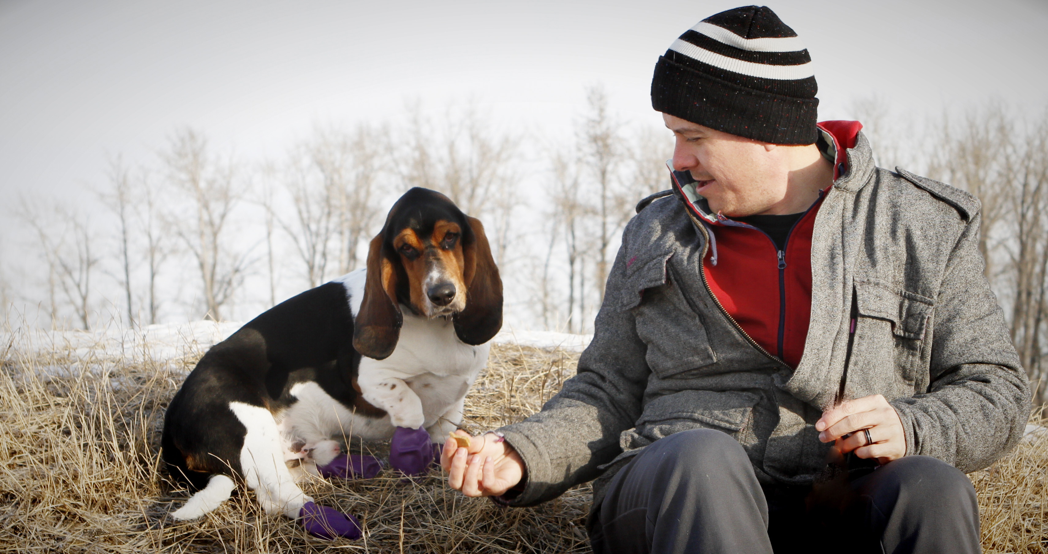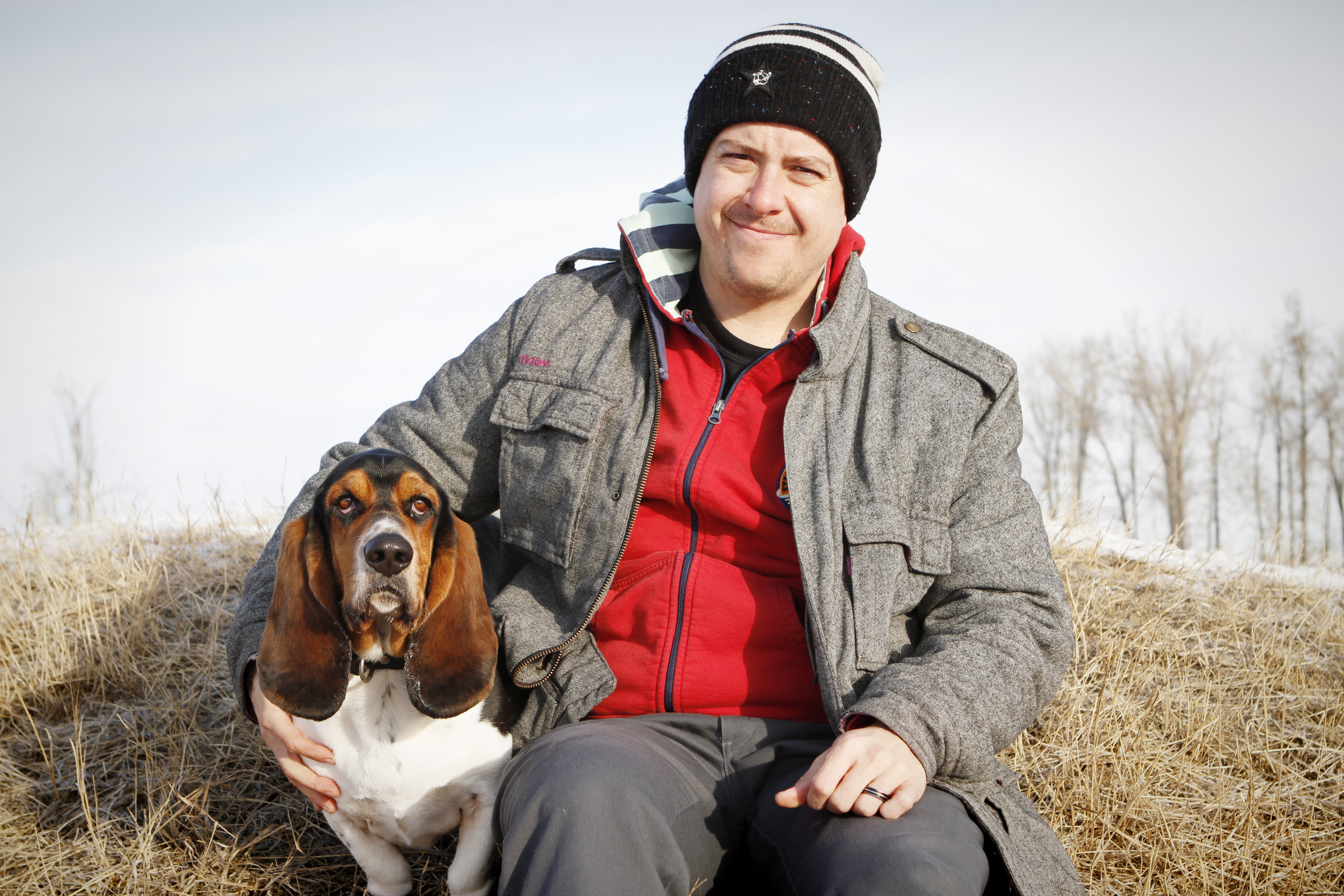 Number 3 – I am pleased to introduce you to NABOO a personable 4 year old Basset Hound and his owner Jeff. We met walking at Southland Dog Park in Calgary. I saw Jeff, Naboo and his ‘Grandma’ Tracey playing a game of hide and seek and chase at the park. I just had to go over and say hello and ask if I could take a photo they were having such a good time. He is such a friendly fellow; Jeff said he should really be wearing a greeter vest as he stops to say hello to every dog and person walking down the paths. He gets quite sad when people don’t take the time to say hello and give him a pat. I love his name and found out he is named after Naboo the Enigma, a quirky shamen character on the British TV show ‘The Mighty Boosh’. He loves his veggies, especially peas and green peppers and he seems to think he likes raspberries but can’t make up his mind. He really loves his spa getaways at Grandma’s house, where is is pampered with lots of walks and a special spot to curl up in. He is just such an amiable fellow, tottering along, occasionally tripping over his ears. It was a real joy meeting him and his people, he is most definitely loved very much and I have to admit he stole a piece of my heart too!