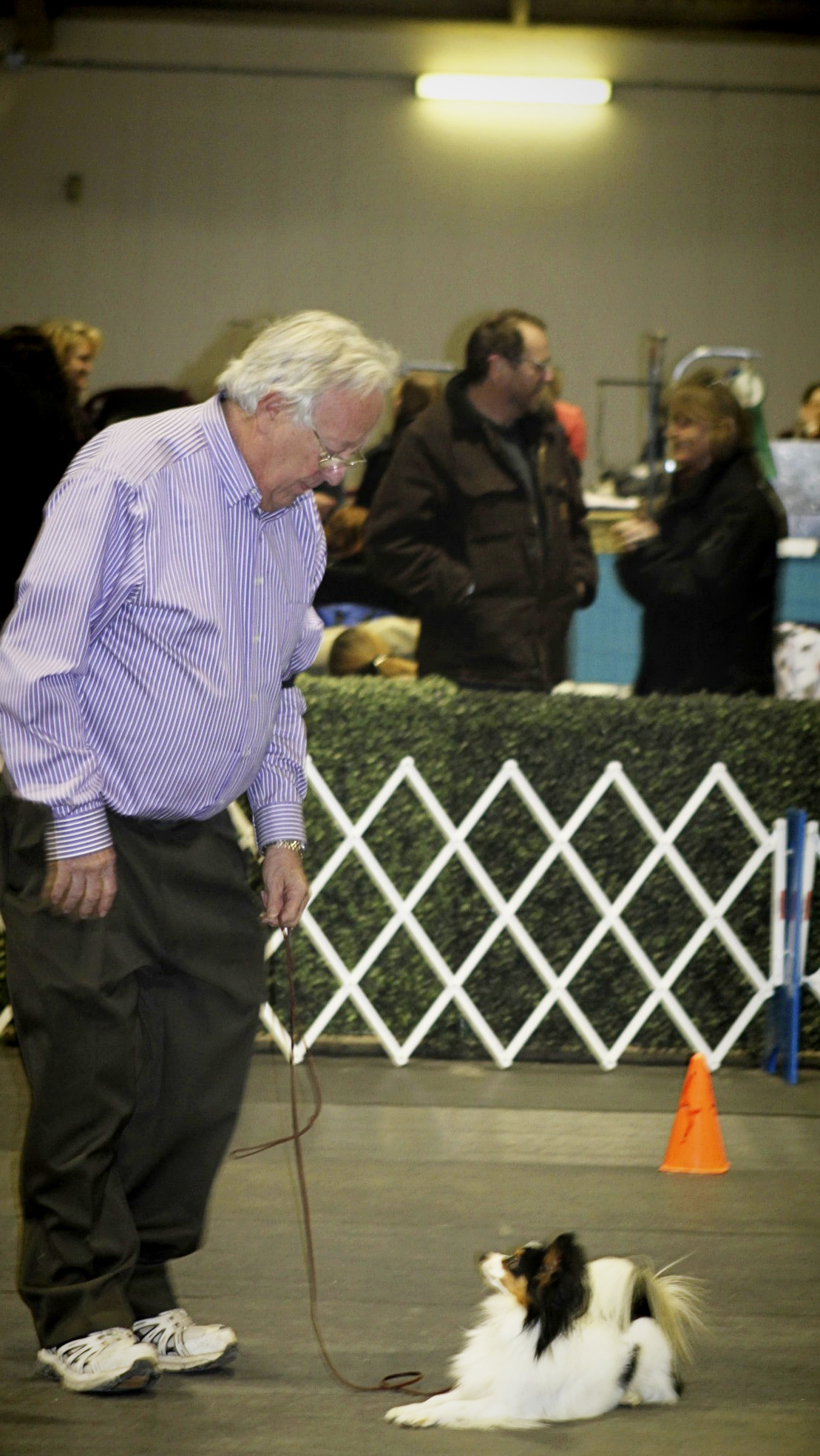 2 1/2 minute sit stay with handlers out of the ring and room! They also did this in a ‘down stay’ too!